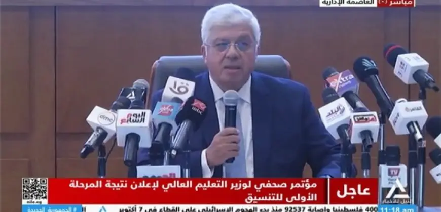 دكتور. عقد أيمن عاشور وزير التعليم العالي والبحث العلمي مؤتمرا صحفيا ظهر اليوم بمقر وزارة التعليم العالي بالعاصمة الإدارية الجديدة لإعلان نتيجة تنسيق المرحلة الأولى للقبول بالتعليم العالي.
